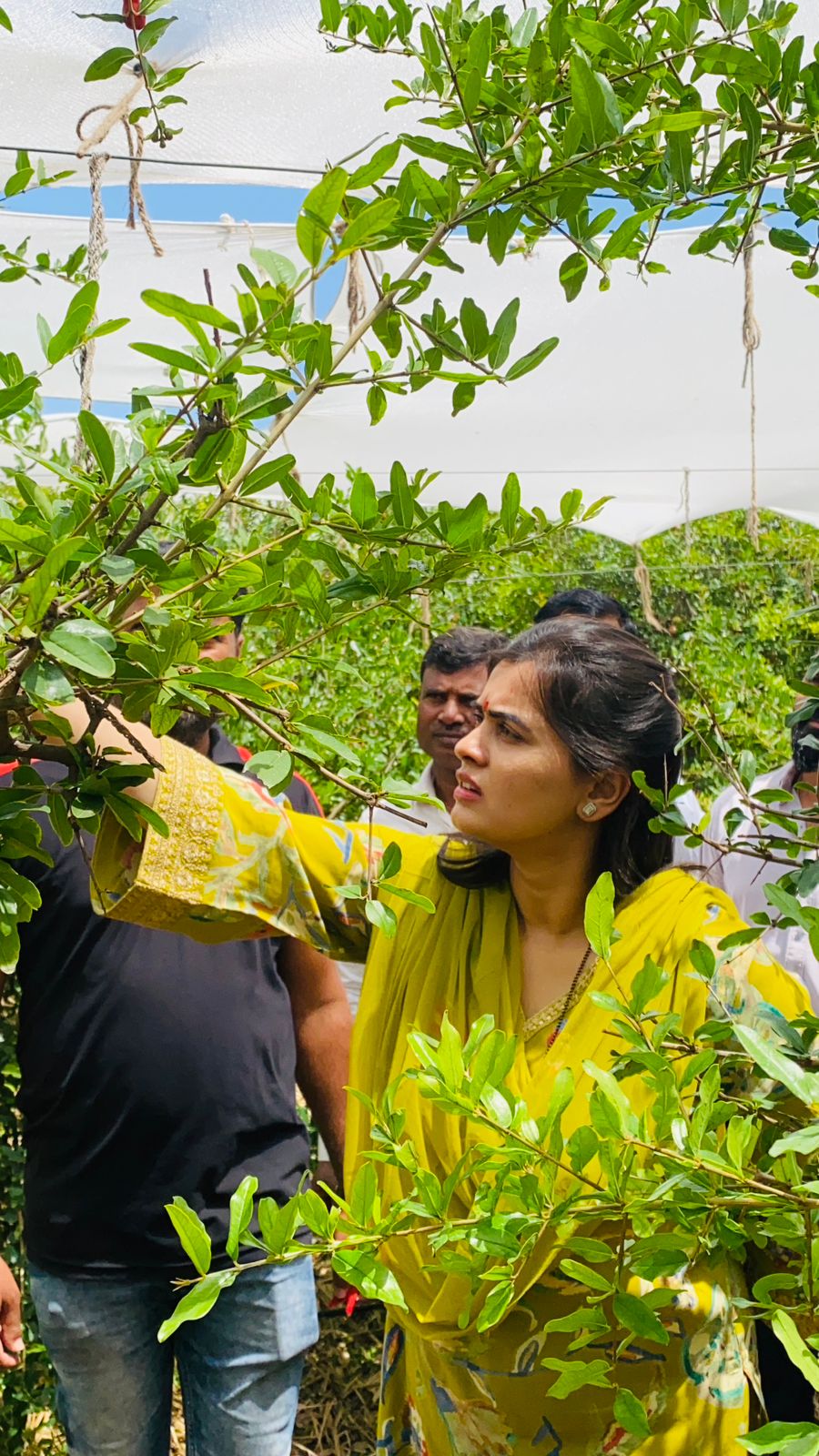 फोटो:-बावडा परिसरामध्ये गारपिटग्रस्त फळबागा, शेती पिकांची ठिकठिकाणी पाहणी करताना अंकिता पाटील ठाकरे व इतर.